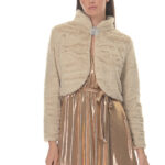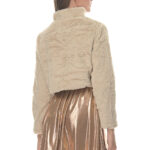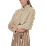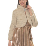 C57384-2 Μπολερό μπέζ λούτρινο με αγκράφα στρας
