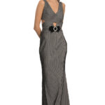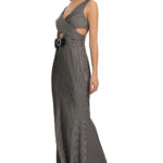 Φόρεμα μαύρο/γκρί  μακρύ σε ύφασμα ελαστικό με ρίγα κ ανοίγματα στη μέση.
