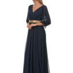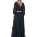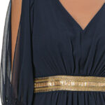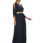 Φόρεμα μπλέ μακρύ,αμπίρ με τρέσα κ μανίκια.