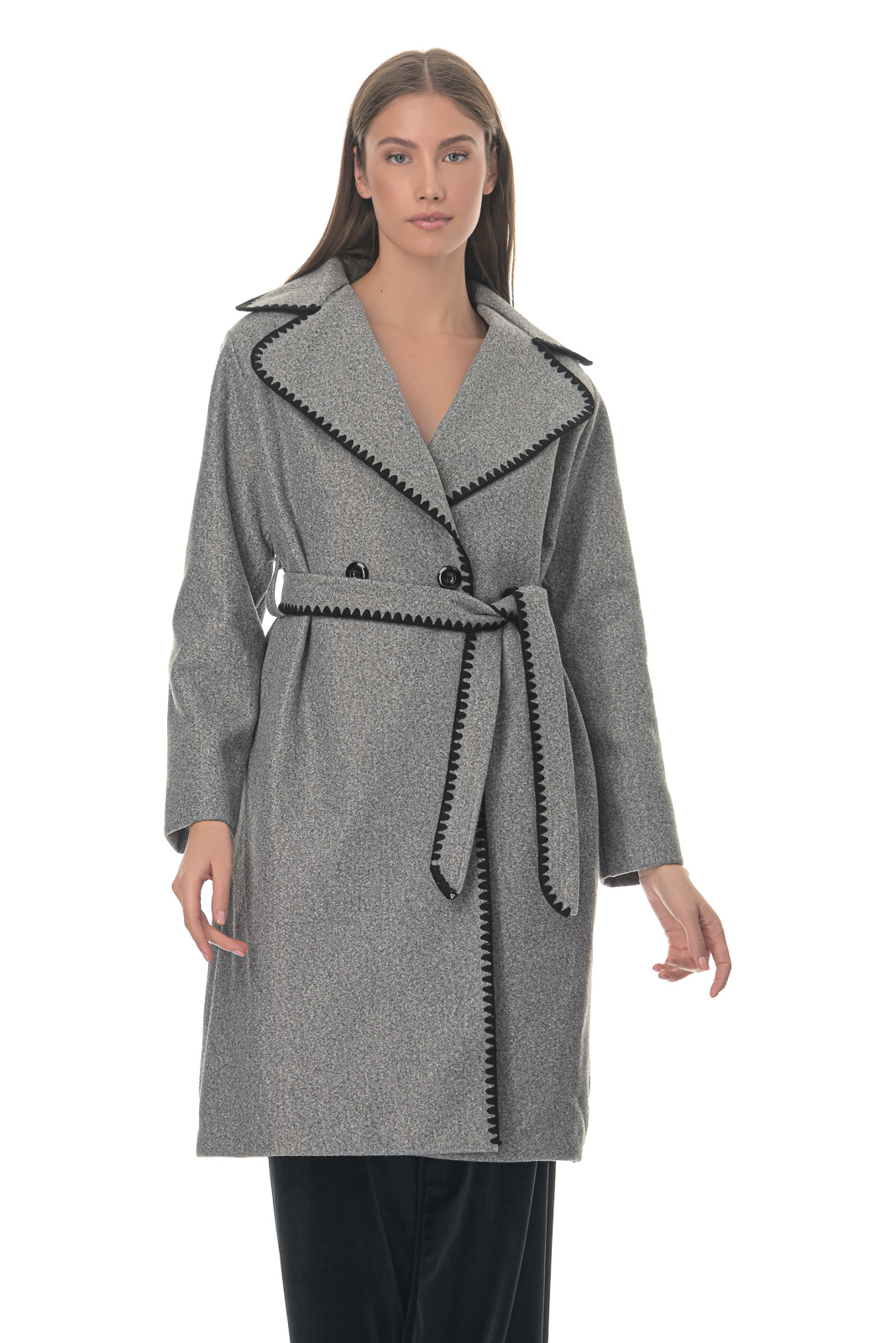 C57346-2 Ημίπαλτο γκρί με στρογγιλό πέτο,άνετο μέγεθος εώς και 2xl. Βελούρ ύφασμα