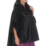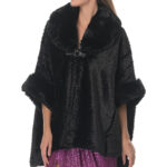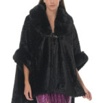 C57290-2 Κάπα μαύρη,λούτρινη με γούνα στον γιακά και στις μανσέτες.
