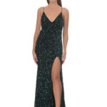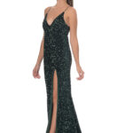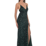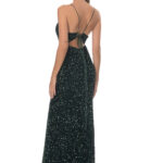 Μάξι πράσινο γοργονέ φόρεμα-βελούδο με παγιέτα-εξώπλατο