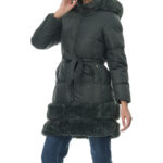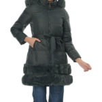 Μπουφάν πράσινο με αποσπώμενη κουκούλα με λούτρινη γούνα.